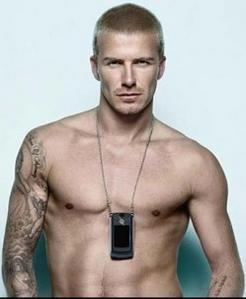 David Beckham est une icône du sport et de la pub. Le footballeur grâce au sens des affaires de sa femme, la Spice Girl, Victoria, a su vendre son image. On le voit aussi bien pour vanter les mérites de vêtements de grandes marques, pour vanter le confort de chaussures de sport encore de marques, pour des slips, du parfum etc...