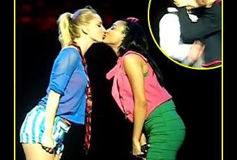 Dimanche, à la fin du concert de Dublin qui a marqué la fin de la tournée, ce sont Naya Rivera et Heather Morris qui ont ajouté une pierre à l’image pro-gay que propose l’univers de la série en échangeant sur scène un baiser de jeunes filles sous les hourras d’un public en extase. Le kiss est parti d’un jeu entre les acteurs qui se sont amusés de leurs personnages. Brittany monte sur scène pour flirter avec Blaine qui gentiment lui explique qu’il est pris. Puis déboule Santana :