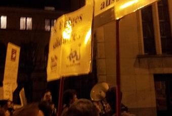 Avec des slogans tels que « Priez pour nous, on baise pour vous », « Barjot, vieille bique, t’es pas la bienvenue en Belgique » ou « Barjot, casse-toi, ici c’est pas chez toi », des défenseurs de la cause homosexuelle se sont joints à plusieurs associations et de partis politiques qui avaient tenu à être présentes à l’instar du PTB, du Cercle Féministe de l’ULB ou de l’Association des Français de Belgique. Son représentant a ainsi voulu rappeler leur lutte pour la non-discrimination et la liberté pour tous et a rappelé qu’il était intolérable que Frigide Barjot et ses acolytes utilisent leurs propres enfants, bafouant ainsi leurs droits et risquant de les mener au suicide lors de lorsqu’ils deviendront adolescents et se rendront peut-être compte qu’ils sont aussi différents. La porte-parole des cercles homos estudiantins a, quand à elle, rappelé leur opposition aux personnes réactionnaires et conservatrices qui veulent revenir en arrière non seulement sur des sujets comme l’homosexualité mais également l’euthanasie.